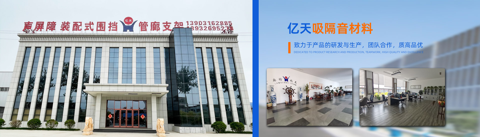 廊坊億天吸隔音材料有限公司于1997年建廠,公司位于河北省廊坊市文安縣興隆宮鎮朱河村工業(yè)區(qū),地處京、津、冀金三角地帶,注冊資金8005萬元。公司一直致力于環(huán)保產品的研發(fā)與生產,主要涉足于公路鐵路噪聲處理、廠房鋼結構、防塵抑塵治理、環(huán)境美化四大領域。主營產品有高速鐵路用···